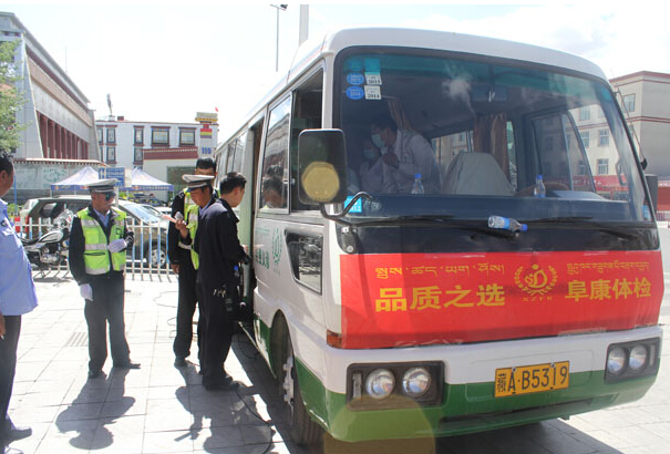 2014年6月11日上午,西藏阜康(國際)健康體檢中心派出免費(fèi)體檢車,為拉薩市公安局交警隊(duì)東西南北郊的執(zhí)勤民警們及女子中隊(duì)做了免費(fèi)體檢。