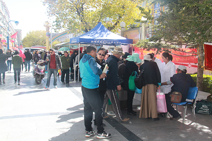10月17日上午, 2016年“扶貧日”大型義診活動(dòng)在拉薩市宇拓路隆重舉行。按照區(qū)衛(wèi)計(jì)委通知,西藏阜康醫(yī)院抽調(diào)4名專家組成“精準(zhǔn)扶貧,健康扶貧小分隊(duì)”在拉薩市宇拓路設(shè)點(diǎn)開(kāi)展以送醫(yī)送藥、送檢查、免費(fèi)義診、健康指導(dǎo)和咨詢服務(wù)等為一體的大型義診服務(wù)活動(dòng)。