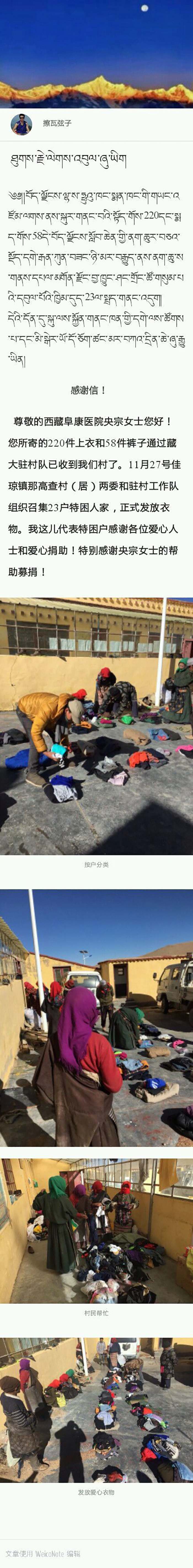 2016年12月1日,當(dāng)微信上一篇由那高查村(居)兩委所發(fā)表的用藏、漢雙語寫下的感謝信漸漸流傳開來,我們才第一次知道了央宗女士一個人默默行善的事跡。