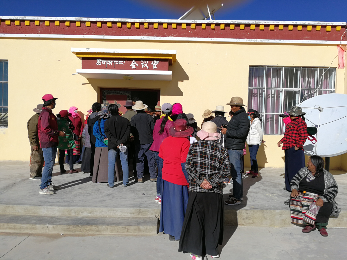 ●達(dá)革吉縣 · 革吉鎮(zhèn) · 會議室外等候篩查的群眾