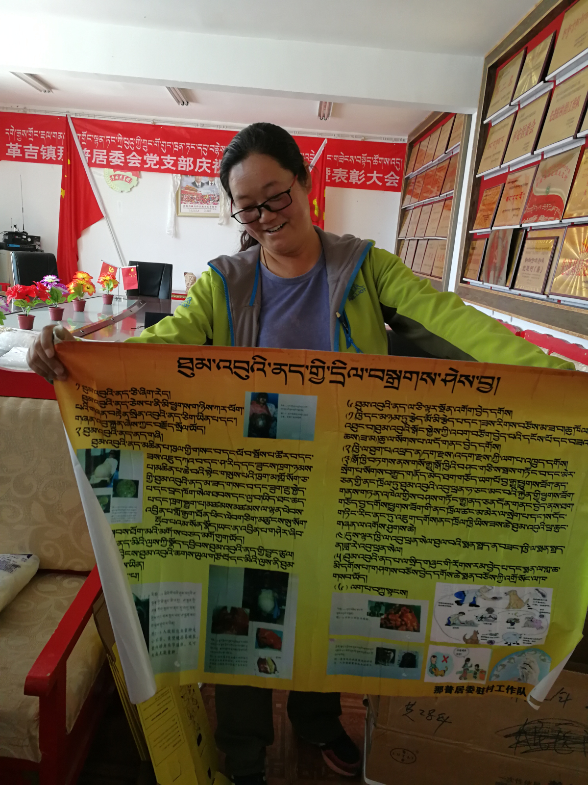 為了做好包蟲病宣傳工作,她自己設(shè)計了很多藏語版的包蟲病宣傳資料,挨家挨戶宣傳指導(dǎo),為了與群眾打成一片,她自學(xué)家電維修,誰家里電器壞了第一個準(zhǔn)是給她打電話。
