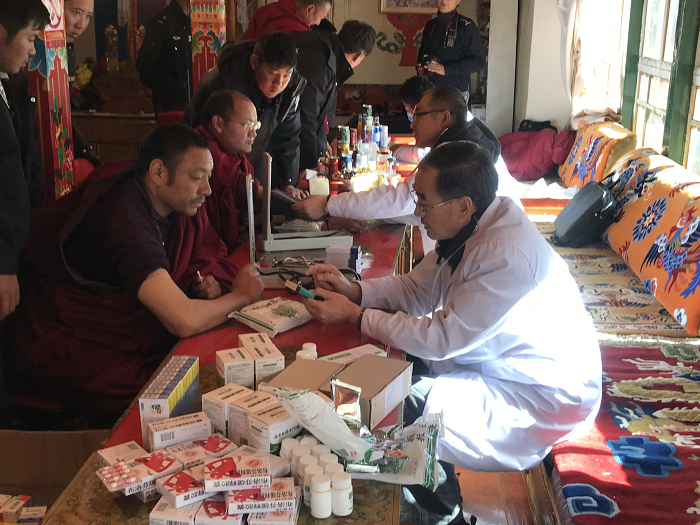 【概要:12月10日上午,在西藏阜康醫(yī)院名譽(yù)院長、慢病管理中心主任張德才的帶領(lǐng)下,阜康義診分隊一行6人來到楚布寺,為附近的僧侶和群眾免費(fèi)測血壓、測血糖、并發(fā)放常見疾病的藥物?!?/span>