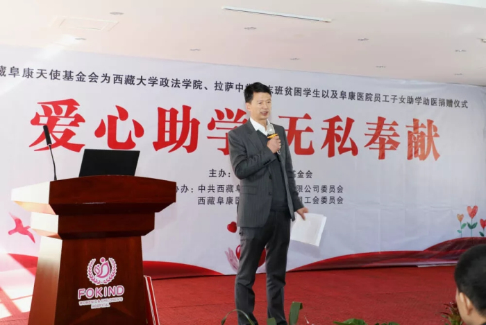 11月28日下午3點(diǎn),“西藏阜康天使基金會(huì)助學(xué)助醫(yī)捐贈(zèng)儀式”在西藏阜康醫(yī)院婦產(chǎn)兒童分院四樓會(huì)議室舉行。西藏阜康天使基金會(huì)理事長(zhǎng)、西藏阜康醫(yī)療股份有限公司黨委書記、董事長(zhǎng)王斌,西藏大學(xué)政法學(xué)院黨委書記羅布,拉薩中學(xué)校長(zhǎng)陳飛,受助學(xué)生家長(zhǎng)代表,受助學(xué)生代表以及阜康醫(yī)療相關(guān)領(lǐng)導(dǎo)出席了本次會(huì)議。會(huì)議由西藏大學(xué)政法學(xué)院張昊文主持。