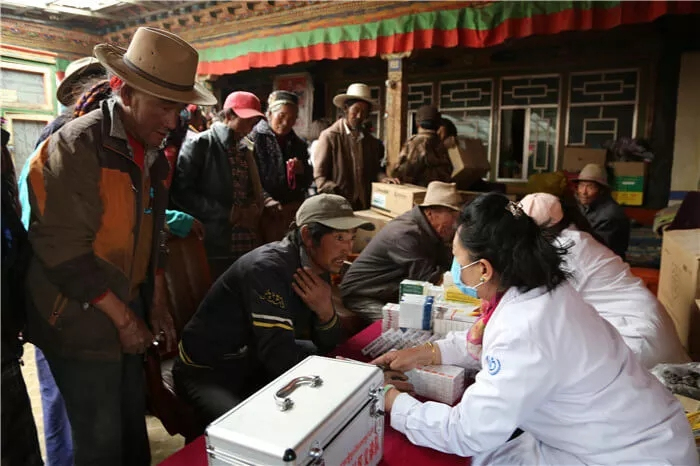 據(jù)了解,芒熱牧村農(nóng)牧民因交通不便、語言溝通等問題,就醫(yī)購藥十分不便。為緩解這一難題,積極響應(yīng)國家號召,推進健康扶貧事業(yè)的發(fā)展,“西藏阜康醫(yī)療股份有限公司”應(yīng)當(dāng)?shù)伛v村工作隊的邀請,組織義診隊協(xié)助基金會開展本次活動。