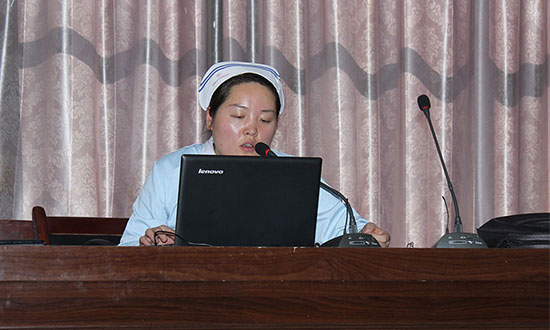 2015年6月10日,由護(hù)士長(zhǎng)王青青主講的基礎(chǔ)護(hù)理服務(wù)工作規(guī)范培訓(xùn)講座在阜康醫(yī)院婦產(chǎn)兒童分院進(jìn)行,在講座中,護(hù)士長(zhǎng)王青青主要強(qiáng)調(diào)各科室針對(duì)不同疾病的患者應(yīng)該如何進(jìn)行護(hù)理服務(wù),以及在護(hù)理的過(guò)程中應(yīng)該注意哪些細(xì)節(jié),比如如何協(xié)助活動(dòng)不便的患者翻身或者下床,怎樣為患者清理面部、口腔、會(huì)陰等部位,留置管怎樣護(hù)理等。講座現(xiàn)場(chǎng),不少培訓(xùn)的護(hù)理人員也向王青青護(hù)士長(zhǎng)反應(yīng)了自己在臨床工作中遇到的一些問題,王青青護(hù)士長(zhǎng)一個(gè)一個(gè)耐心的向大家解答。