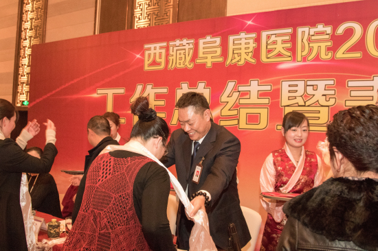 2016年1月19日下午3點半,西藏阜康醫(yī)院2015年度總結(jié)暨表彰大會在香格里拉大酒店隆重舉行,本次2015年度總結(jié)表彰大會由敖德秀副院長主持,王斌董事長、陳彬總經(jīng)理、張德才總院長、劉連福副院長、張治副院長、李君副院長、何靜院長助理等各位院領(lǐng)導及三家醫(yī)院、體檢中心全體員工參加本次會議。