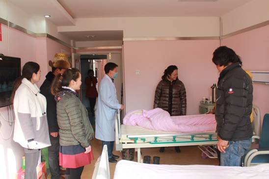 2月9日上午,正值藏歷新年初一,院領(lǐng)導(dǎo)分別探望了在我院住院的患者,我院領(lǐng)導(dǎo)親切地與病人及家屬交談并送上節(jié)日的禮物,關(guān)切地了解他們的病情,并祝愿他們?cè)缛栈謴?fù)健康,大家的臉上都洋溢著幸福的笑容,衷心感謝醫(yī)院的關(guān)懷