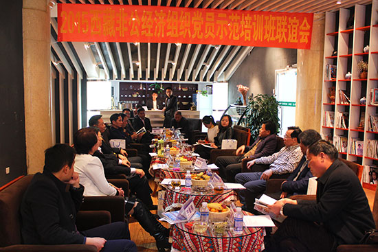 2016年3月25日及3月27日下午,拉薩知名會(huì)所企業(yè)座談會(huì)及2015西藏非公經(jīng)濟(jì)組織黨員示范培訓(xùn)班聯(lián)誼會(huì)先后在西藏阜康(國(guó)際)健康體檢中心咖啡廳舉行。拉薩各知名會(huì)所企業(yè)代表、2015西藏非公經(jīng)濟(jì)組織黨員示范培訓(xùn)班成員:西藏阜康醫(yī)藥發(fā)展有限公司總經(jīng)理、黨委紀(jì)檢委員陳彬,西藏阜康醫(yī)藥發(fā)展有限公司黨支部青年委員、董秘李霞,西藏雅喜實(shí)業(yè)公司黨支部副書(shū)記、董秘雷滿興,拉薩遠(yuǎn)大建材有限公司支部副書(shū)記周西平,拉薩市城關(guān)區(qū)億鑫廢舊回收有限公司黨支部書(shū)記李曉飛,江蘇商會(huì)常務(wù)理事梁鉅松,拉薩市申新商貿(mào)有限公司董事長(zhǎng)趙萬(wàn)才,星宇通訊器材有限公司黨支部書(shū)記王金剛,西藏華鈺礦業(yè)集團(tuán)黨委副書(shū)記劉志峰,西藏浙江商會(huì)黨支部書(shū)記陳炬亦,西藏蓋天力機(jī)械有限公司總經(jīng)理王東勝,西藏百益大酒店總經(jīng)理、法人代表曹光亮,拉薩鼎業(yè)制粉有限公司副總經(jīng)理郭倩,西藏泰成餐飲有限公司黨支部負(fù)責(zé)人孫宏霞,西藏易境旅游景觀設(shè)計(jì)有限公司黨支部書(shū)記李川及我院扎西頓珠副院長(zhǎng),敖德秀副院長(zhǎng)、黨委專職副書(shū)記,張治副院長(zhǎng),各醫(yī)院辦公室主任等先后參加了兩次會(huì)議。