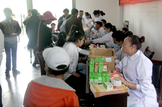 義診活動(dòng)剛開(kāi)始,義診臺(tái)就被圍個(gè)水泄不通,此外,黨支部的醫(yī)務(wù)人員們?yōu)榈群驒z查的殘疾人發(fā)放有愛(ài)心早餐及日常用品等。義診過(guò)程中,醫(yī)務(wù)人員分工協(xié)作,井然有序地為前來(lái)義診的殘疾人量血壓、測(cè)血糖、聽(tīng)心率等,同時(shí)認(rèn)真問(wèn)詢(xún)并聽(tīng)取他們講述自己的病癥,為一些需要服藥的殘疾人開(kāi)具處方和免費(fèi)發(fā)放藥品,并一一介紹藥品的服用方法、劑量等,也為一些長(zhǎng)期服藥的殘疾人調(diào)整了治療方案,更耐心提醒他們要注意養(yǎng)成健康的生活方式,向他們宣傳健康保健知識(shí)。