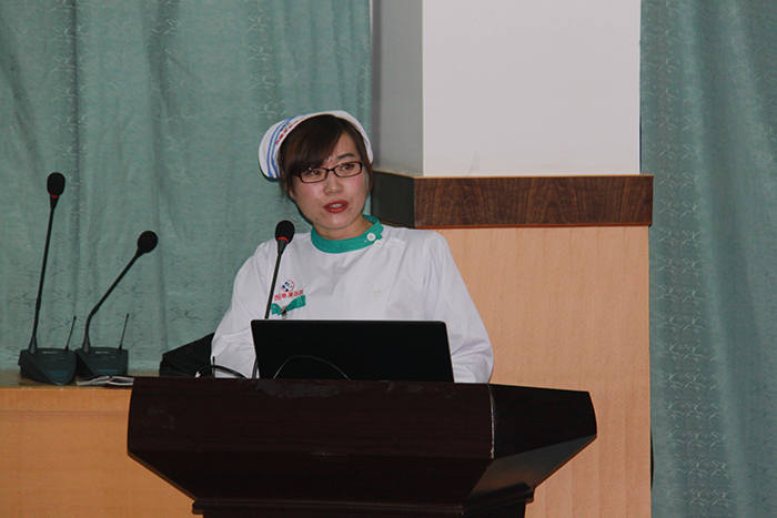隨后護(hù)理部主任李麗通過自己在北京萬柳美中宜和婦兒醫(yī)院的學(xué)習(xí)情況,結(jié)合我院與該院存在的差距,對護(hù)理管理理念和先進(jìn)??谱o(hù)理技術(shù)進(jìn)行了科學(xué)化、規(guī)范化的講解,將持續(xù)深入地開展我院“優(yōu)質(zhì)護(hù)理”工作推向了新的高度。