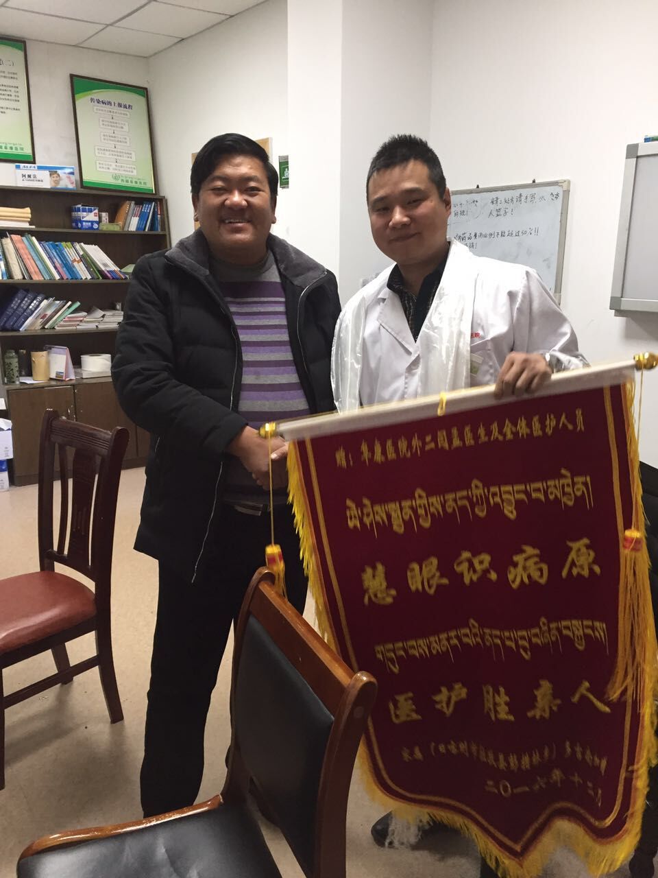 2016年12月1日,患者曲宗出現(xiàn)上腹部疼痛,嘔吐、寒戰(zhàn)、胸悶等癥狀,患者曲宗到地區(qū)醫(yī)院就診,給予輸液治療一天,未見好轉(zhuǎn)。遂來我院,經(jīng)門診檢查診斷為“急性闌尾炎”后收治到外二科,經(jīng)多名外二科醫(yī)生會診后,決定立即為患者曲宗進行“急性闌尾炎”手術(shù),手術(shù)非常順利,在醫(yī)護人員的精心照顧下央宗康復(fù)很快,為表感謝,患者家屬出院時送來錦旗。