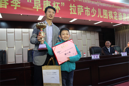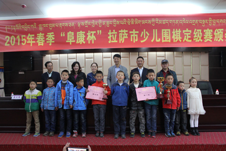 3月25日比賽結束后“復康杯”少兒圍棋定級賽頒獎儀式開始,拉薩棋院院長王斌、西藏阜康醫(yī)藥發(fā)展有限公司總經(jīng)理劉瀟瀟、西藏阜康醫(yī)藥發(fā)展有限公司總經(jīng)理陳彬、拉薩棋院圍棋部副主任趙鈞以及棋院老師陳學滸、袁文琴出席了本次會議。 王斌院長在頒獎儀式表示,很高興能夠舉辦拉薩市首屆“阜康杯”少兒圍棋定級賽,他向比賽獲勝者表示衷心的祝賀,希望他們能再接再厲繼續(xù)學習圍棋。他了解到很多家長對拉薩市棋院選址郵政賓館非常滿意,這里環(huán)境清幽,非常適合教學,他當場表示郵政賓館二樓已經(jīng)被棋院斥資180萬元租賃6年,至少在6年以內(nèi)棋院不會從新選址。王斌表示,目前,拉薩棋院正在向上級有關部門申請圍棋段位資格證的相關事宜,如無意外,預計在今年年底能夠申請成功,完成圍棋段位資格證的申請,不僅能給我區(qū)圍棋事業(yè)的發(fā)展帶來很大的幫助同時也能讓我區(qū)更多的圍棋愛好者參與到此次項目。