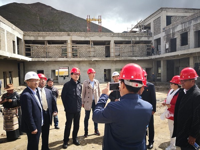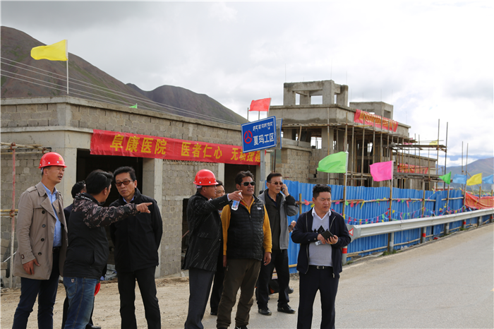 2018年了8月9日,受阜康邀請(qǐng),西藏自治區(qū)政協(xié)副主席、區(qū)工商聯(lián)主席、區(qū)總商會(huì)會(huì)長阿沛·晉源,拉薩大昭寺管家洛桑,西藏自治區(qū)社會(huì)科學(xué)院原處長次旺仁青,西藏阜康醫(yī)療股份有限公司黨委書記、董事長王斌,西藏阜康醫(yī)療股份有限公司黨委副書記、副總經(jīng)理陳彬,西藏阜康醫(yī)院名譽(yù)院長嘎布,阜康生殖醫(yī)學(xué)中心實(shí)驗(yàn)室主任劉鋒,阜康體檢中心主檢師瓊瑪,阿沛·晉源主席秘書旦增一行早上8點(diǎn)從拉薩出發(fā),一路顛簸馳騁于下午2點(diǎn)50分許抵達(dá)那曲地區(qū)嘉黎縣夏瑪鄉(xiāng)。聽說晉源主席要來視察衛(wèi)生院的建設(shè)工作,嘉黎縣縣長吾金不顧受傷的左腿帶領(lǐng)當(dāng)?shù)馗刹咳罕娫缭绲群蛟谙默斷l(xiāng)衛(wèi)生院建設(shè)現(xiàn)場。