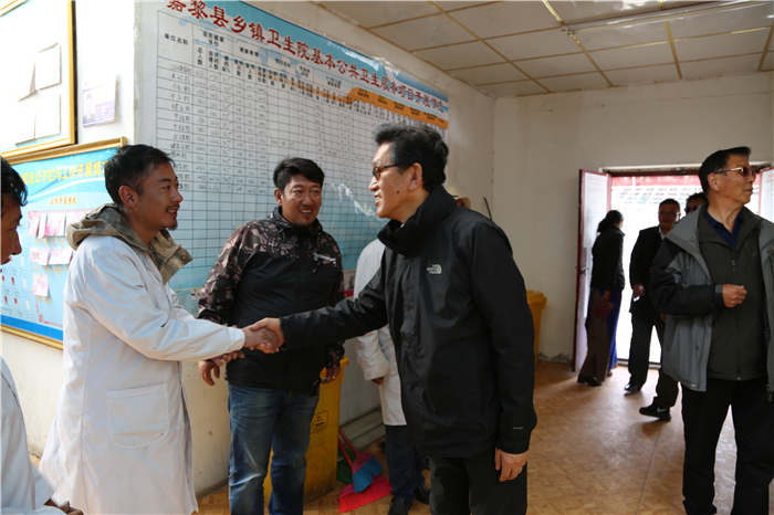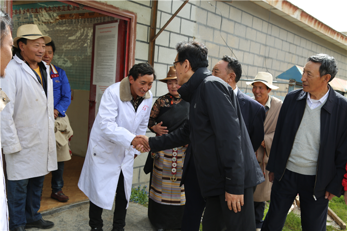 阿沛·晉源主席和施工人員一一握手慰問,囑咐他們?cè)谑┕み^程中一定注意安全!要把衛(wèi)生院建成標(biāo)桿衛(wèi)生院,造福夏瑪鄉(xiāng)農(nóng)牧民群眾!看完即將竣工的衛(wèi)生院他又來到老舊的衛(wèi)生院看望正在工作的醫(yī)護(hù)人員,與醫(yī)護(hù)人員和患者親切握手交談,囑咐他們一定多加學(xué)習(xí)和培訓(xùn),用心工作,搬到新的衛(wèi)生院后一定不要辜負(fù)阜康全體員工的期望!接著晉源主席也指示阜康要繼續(xù)幫助衛(wèi)生院,切實(shí)提高衛(wèi)生院工作人員醫(yī)療水平,將夏瑪鄉(xiāng)衛(wèi)生院打造成全縣乃至全區(qū)的標(biāo)桿衛(wèi)生院!