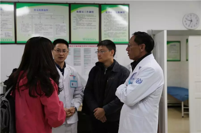 在西藏阜康醫(yī)院綜合院區(qū)急診科,余海放主任詳細(xì)了解科室的設(shè)備、人員配備等情況,肯定了我院在醫(yī)療設(shè)備投入方面的成績。在阜康醫(yī)院配劑室,余海放主任贊賞說:“阜康醫(yī)院的配劑室利用互聯(lián)網(wǎng)傳送藥方,不但節(jié)省了患者的時(shí)間,方便了患者,更體現(xiàn)了阜康醫(yī)院的專業(yè)化,現(xiàn)代化!”