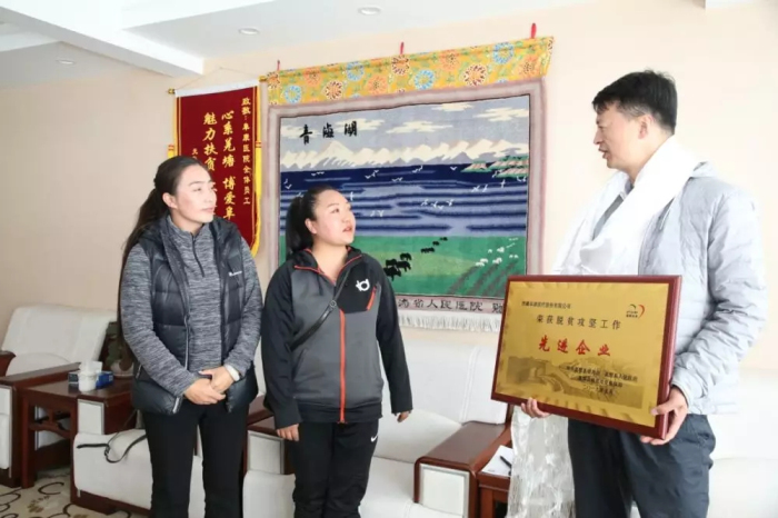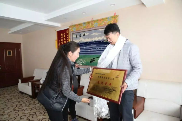 隨后,才旦卓嘎向阜康醫(yī)療股份有限公司黨委書記、董事長王斌頒發(fā)“脫貧攻堅工作先進(jìn)企業(yè)”匾牌。
