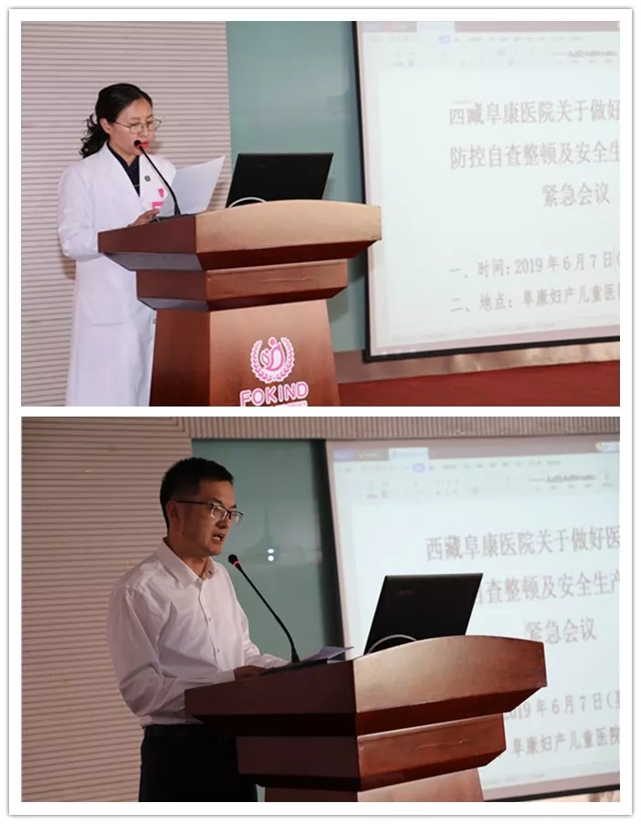 6月7日,西藏阜康醫(yī)院召集全院在崗中、高層領(lǐng)導(dǎo)在婦產(chǎn)兒童院區(qū)4樓會(huì)議室召開了關(guān)于做好醫(yī)院感染防控自查整頓及安全生產(chǎn)工作緊急會(huì)議。