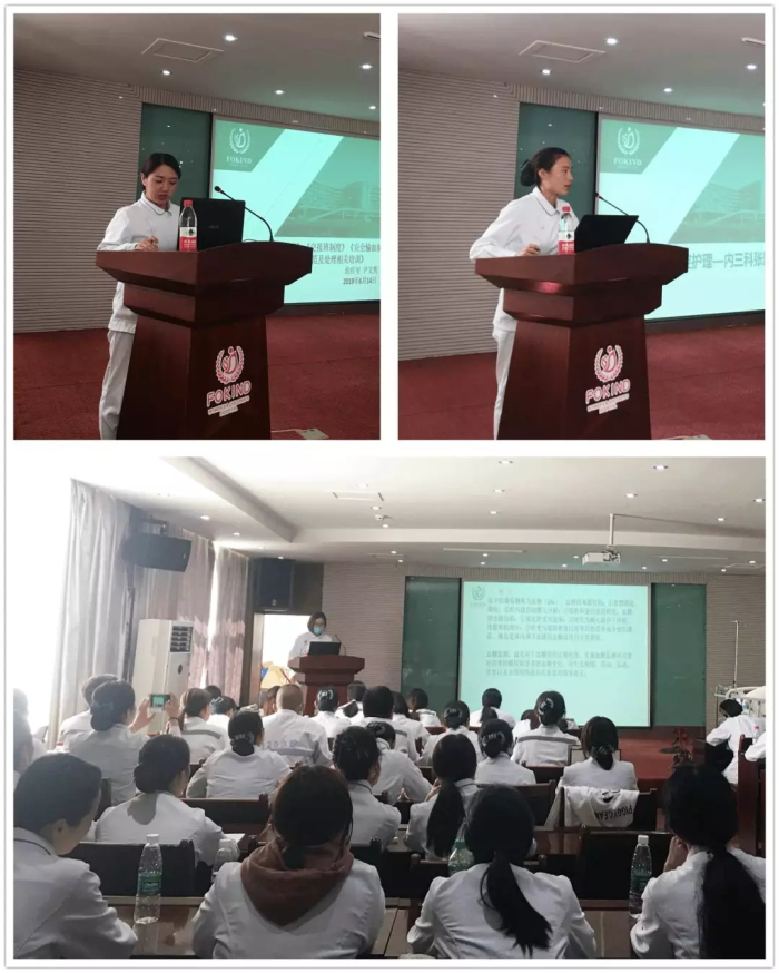 6月19日下午,在院長助理、護(hù)理部主任李麗的指導(dǎo)下,我部組織了阜康醫(yī)院共62名護(hù)理人員在阜康婦產(chǎn)兒童醫(yī)院四樓會(huì)議室開展了以“口腔護(hù)理”、“血糖監(jiān)測”、“查對(duì)制度、交接班制度、安全輸血制度、護(hù)理糾紛防范及處理”的相關(guān)培訓(xùn)。內(nèi)三科護(hù)士長張穎結(jié)合科室遇到的口腔護(hù)理操作,針對(duì)口腔護(hù)理用物準(zhǔn)備、口腔護(hù)理的適應(yīng)癥、常用溶液的作用、口腔護(hù)理的操作流程等方面進(jìn)行了講解;外二科護(hù)士長陳群就血糖監(jiān)測結(jié)合臨床經(jīng)驗(yàn)針對(duì)血糖監(jiān)測的目的,操作流程及對(duì)糖尿病患者的健康宣教進(jìn)行講解;治療室護(hù)士長尹文雋在講解制度中再三強(qiáng)調(diào)我們護(hù)理操作中要時(shí)刻銘記“患者需求至上”的核心價(jià)值觀,做到患者安全、護(hù)理安全,全心全力為患者服務(wù)。