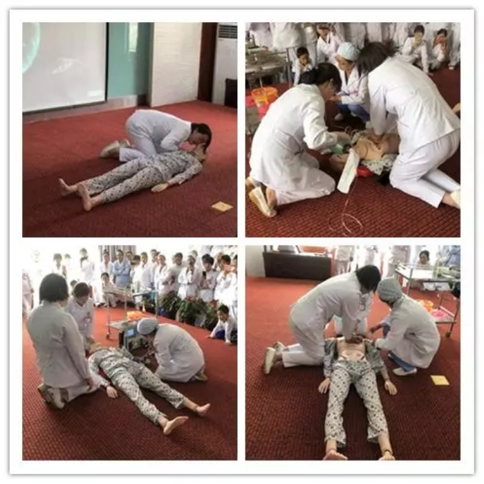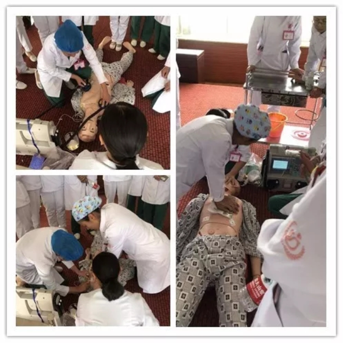 護(hù)理部主任王青青、兒科周玲護(hù)士長(zhǎng)及產(chǎn)科二病區(qū)代理護(hù)士長(zhǎng)李艷三人配合進(jìn)行了心肺復(fù)蘇除顫操作技術(shù)。本次講課內(nèi)容豐富并貼近實(shí)際工作,老師現(xiàn)場(chǎng)操作演示護(hù)理技術(shù),護(hù)理人員積極互動(dòng),各科室分別派出三人進(jìn)行了實(shí)操演練,在老師的指導(dǎo)下熟悉了流程并掌握了重點(diǎn)步驟。