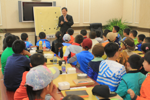 頒完獎(jiǎng)項(xiàng),本次拉薩市2015年“阜康杯”少兒圍棋錦標(biāo)賽也落下了帷幕。最后,我們有幸請(qǐng)到了國(guó)手九段的曹老為我們拉薩棋院的小棋手們講課,課上,一位位小棋手們端正坐好,聚精會(huì)神地聆聽(tīng)著曹老講 課,生怕錯(cuò)過(guò)什么內(nèi)容。而曹老親切祥和的細(xì)微講解,加之其不時(shí)跟小朋友們提問(wèn)、互動(dòng),也讓得這節(jié)特殊寶貴的課堂變得其樂(lè)融融!感謝曹老于百忙之中抽出時(shí)間為我們的小棋手講課,相信我們的小棋手們?cè)谶@樣一節(jié)課堂中,必然受益良多。
