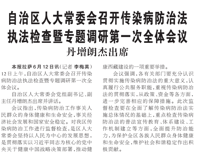 - · 自治區(qū)人大常委會(huì)召開(kāi)傳染病防治法 執(zhí)法檢查暨專題調(diào)研第一次全體會(huì)議——丹增朗杰出席