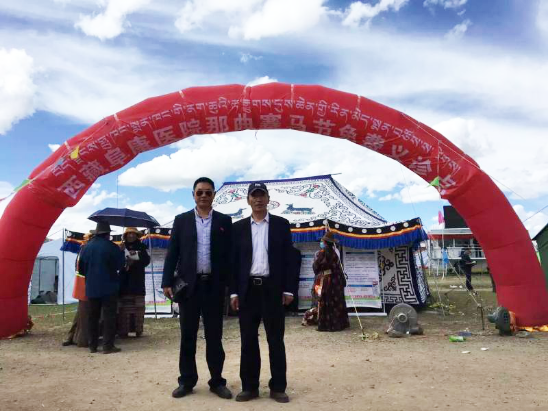▲黨委紀(jì)檢委員陳彬同志與嘎布院長義診點前的合影