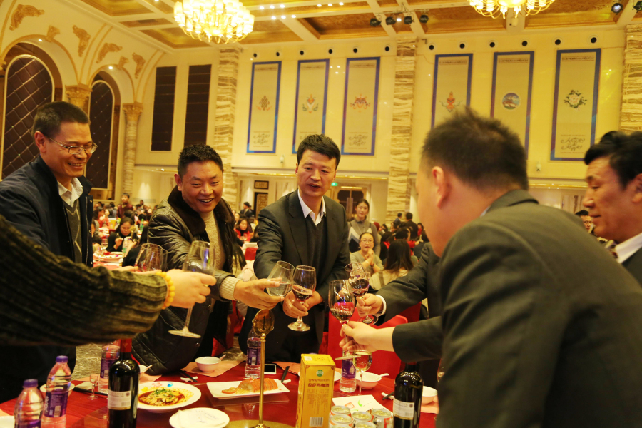 晚宴尾聲,董事長(zhǎng)王斌邀請(qǐng)所有院級(jí)領(lǐng)導(dǎo)上臺(tái)共同舉杯說:“希望大家在新的一年繼續(xù)沿著創(chuàng)新的道路團(tuán)結(jié)一致、規(guī)范管理、用心服務(wù),開源節(jié)流地做好自己本職和醫(yī)院的工作。我相信,在各位阜康同仁的共同努力下,2018年我們一定會(huì)保質(zhì)、保量完成工作計(jì)劃。為保障西藏自治區(qū)廣大人民群眾的身體健康做出新的更大的貢獻(xiàn),促進(jìn)醫(yī)院健康、持續(xù)、穩(wěn)步地向前發(fā)展,更上一層樓,再鑄新輝煌! ”