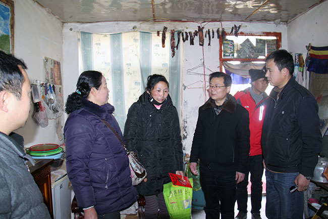 阜康婦產(chǎn)兒童醫(yī)院保潔組組長昂旺桑姆租住在區(qū)防疫站低矮的出租房里,房子面積小、背陰,即使在陽光燦爛的日子里也須一直生火取暖。她的丈夫患有嚴重的高原心臟病,已經(jīng)喪失了勞動能力,每日在家養(yǎng)病,所需醫(yī)療費用成為家中一個極大的支出項目,與此同時,她一個人的工資還要負擔兩個孩子的學費、生活費,為此一家人只能租住在租金便宜、條件惡劣的出租房里。活動當天,當院領導來到她家時,因為房子面積太小,一進入室內(nèi)就已經(jīng)無法轉(zhuǎn)身,顯得特別的擁擠,說起家里的困難時,昂旺桑姆語帶哽咽,淚盈于睫。