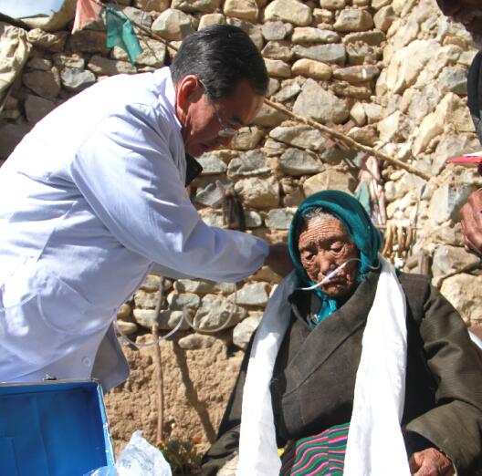 11位百歲老人有8位女性,3位男性。年齡最大的有110歲,最小的100歲。他們的居住地海拔都在3800—5000米,均為農牧民。有三位居住在拉薩市區(qū),其中一位祖籍那曲索縣,一位林州縣,還有一位居住在柳梧區(qū)。百歲老人的健康狀況如下:十一位,除聽力、視力有所下降,個別血壓偏高外,心臟、肝腎、胃腸功能都很好,思維敏捷,記憶力都不錯,有的還能記得四、五十歲的事情。由此看來高原低氧環(huán)境或許能起到抑制人體過度氧化,從而延緩衰老的作用。