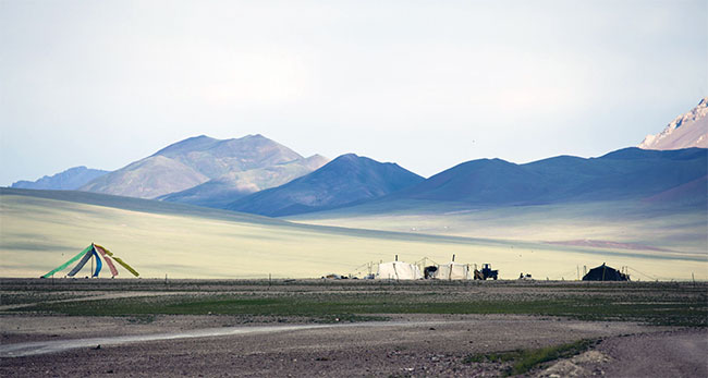 家鄉(xiāng)的9月,酷暑還沒消退,而當我從拉薩乘車到達措勤境內時,這里卻下起了鵝毛般的大雪。車里所有人都被司機喊下了車,在雪地里推這不中用的大“鐵皮”。初次見到如此美妙的雪景,我挺激動,并沒因為糟糕的路況而苦悶。還好,雪并沒有下太久,汽車又奔馳在廣闊草原上,前方是望不盡的天際和地平線到達改則縣城,如同到達歐洲中世紀的小城。土墻,矮窗,牧民家的煙囪和那裊裊的青煙構就著荒原中詩般的生活氣息。“大漠孤煙直,長河落日圓”的邊塞景象真實地展現(xiàn)在眼前。當然,改則縣長河是沒有的,在我印象里最深刻的是這三種事物:太陽、烏鴉和荒原。太陽永不懈怠,每天都從天邊升起然后落下;成群烏鴉粗劣嘶啞的叫聲給了荒原更加凄切的靜謐——呱、呱;而荒原,是太陽和烏鴉永恒的載體,不離不棄。