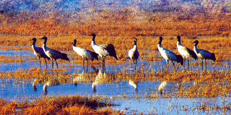 “黑頸鶴?我的黑頸鶴!難道都去覓食了?也不留只看家的。”小彭的感慨于我無礙,他的目標是唯一的,我則是見到生靈就高興,如能一睹黑頸鶴的芳容更好。