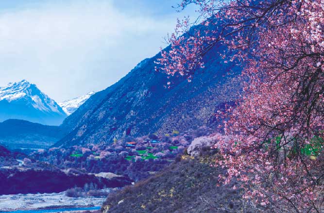 “你就那樣開著,是一首詞,高原雪山之上有你美麗的韻腳,帕隆藏布江邊有你往事的詞牌。我不問,你也不用答。余下的時光,你在半卷書的舊事里,在一闕詞的高原里,在雪山下的雨聲里,在青稞月影里,被我提筆寫進,我一個人的春天里。想像著,在一首詞里,一株桃樹下,書里書外,你是三月桃花,我是人間四月天。”波密的桃花就那樣盛開著,千年不變,與世滄桑。