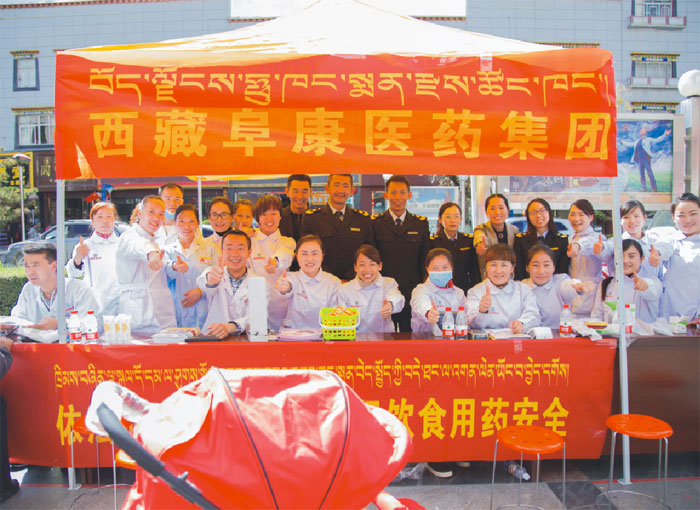 2016年10月14日上午,西藏阜康醫(yī)藥發(fā)展有限公司組織16名醫(yī)護(hù)人員于拉薩市宇拓路迎賓館旁建立免費(fèi)義診宣傳點(diǎn),積極參加由拉薩市食品藥品監(jiān)督局牽頭組織的“全國安全用藥月”主題宣傳活動,宣傳藥物濫用的危害、普及安全用藥知識、引導(dǎo)廣大社會群眾樹立安全合理用藥的意識,同時免費(fèi)為過往的群眾測血壓、血糖,免費(fèi)看病及發(fā)放維生素、鈣片、風(fēng)濕及心腦類等價值一萬兩千余元藥品。