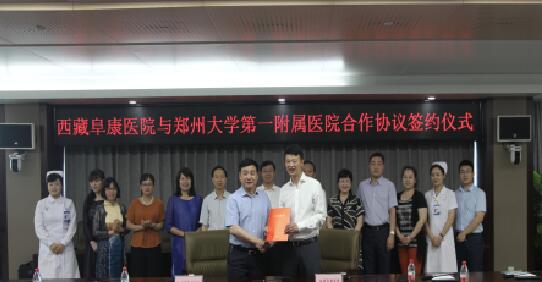 2017年6月2日上午9:00在河南鄭州大學第一附屬醫(yī)院鄭東院區(qū)8號樓會議室舉行了一場隆重的簽約儀式。西藏阜康醫(yī)院與鄭州大學第一附屬醫(yī)院在這里正式簽署了兩院合作協(xié)議。今后鄭州大學第一附屬醫(yī)院將在在遠程醫(yī)療會診、??平ㄔO、人才培訓、雙向轉診、科研合作方面,給予阜康醫(yī)院全力支持。