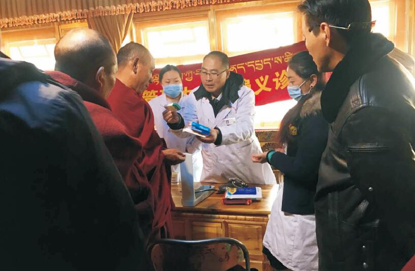11月28日上午,我院慢病管理中心組織5位醫(yī)護(hù)人員在甘丹寺共計(jì)為200多名僧侶進(jìn)行免費(fèi)測(cè)血壓、血糖、氧飽和度以及發(fā)放常見疾病的藥物。義診期間得到了羅布次仁處長、索次主任的大力支持與幫助。體檢完畢后,羅布次仁處長帶領(lǐng)醫(yī)護(hù)人員參觀了寺廟的主殿,并贈(zèng)予甘丹寺主殿的金色哈達(dá),以表對(duì)阜康工作人員的感激之情。